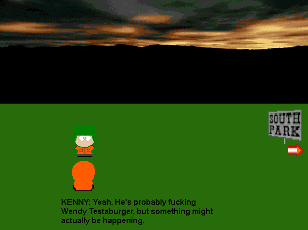In this Halloween themed demo from 2000, Kyle, Cartman and Kenny were out camping in the forest (Stan was absent for some reason). However, Cartman goes missing, and Kyle & Kenny head out through the woods to investigate what's going on; could this be the happening of yet another zombie apocalypse?
