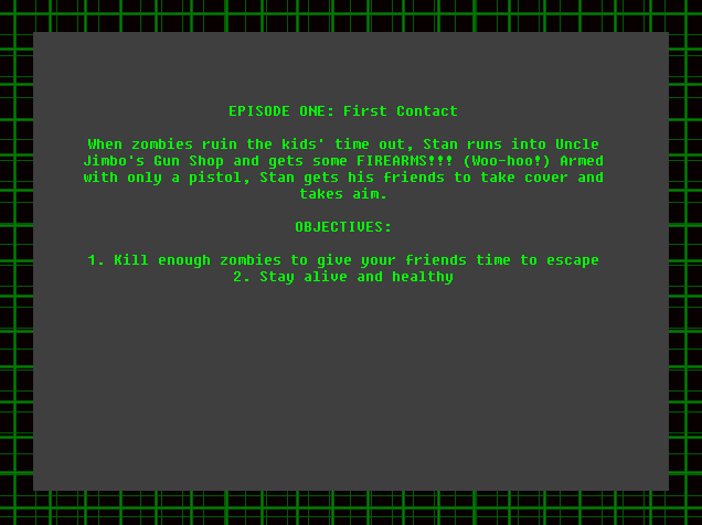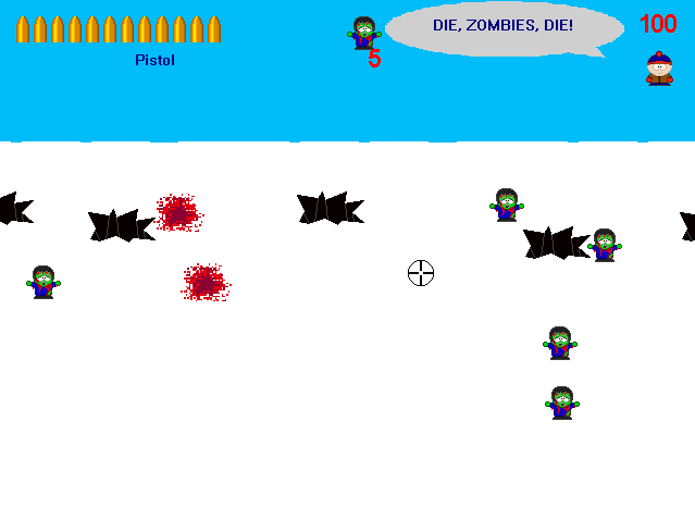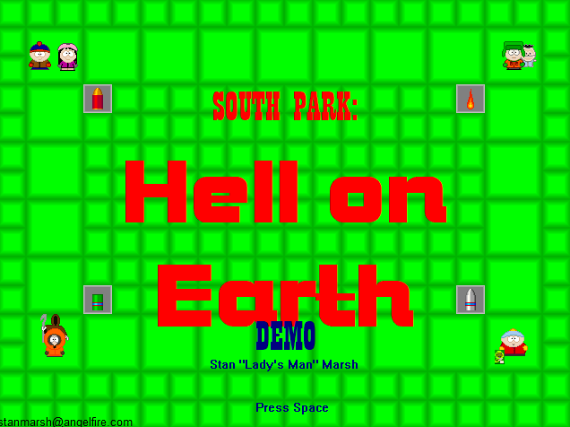 One of Stanster's first games ever made (if not finished), once again South Park is attacked by zombies and minions of Hell, and Stan, Kyle, Kenny, Cartman and Wendy must fight them off in this shooter game reminiscent of Mark Hadley's games released around the same time!