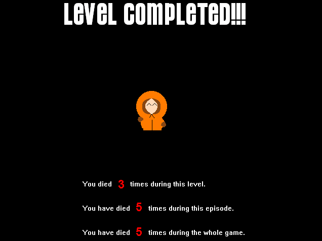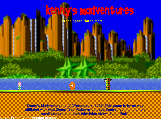 A platformer game starring Kenny and major spoofing of Sonic The Hedgehog games (even giving Cartman's Adventure a run for its money in that department), although exceptionally challenging by way of some very sluggish movement for the poor, death-prone little pervert!