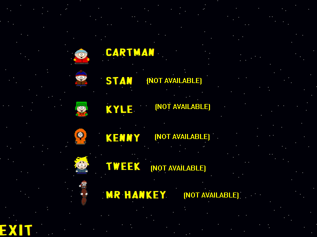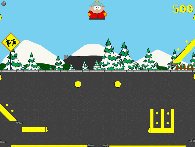 Rumney's take on a pinball arcade machine, pick one of the SP boys/Mr Hankey (only Cartman is available in the demo), then keep the pinball in play with the flippers whilst Cartman utters lines from the show denoting your progress!