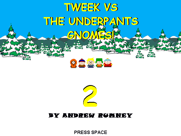 Who said more of the same was a bad thing? Not Rumney, that's for sure! In this sequel to the first Tweek game, it's time for just that, as the Underpants Gnomes clearly didn't get the message the first time, Tweek must drill it further into their skull by thinning their herd some more with his cups of meth-laced coffee!