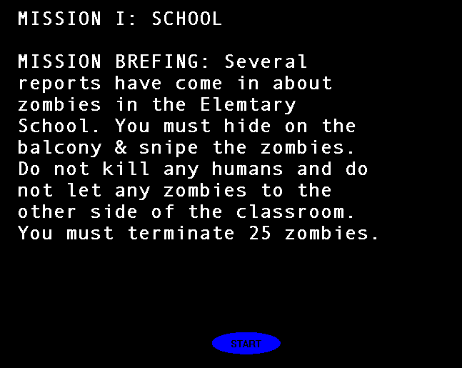 A very short Beamer demo in which, you, a sniper are tasked to snipe zombie clones of the children of South Park as they invade the school, without killing or letting any of the healthy kids get infected!